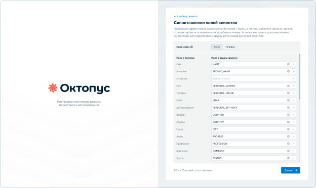 После этого платформа начинает получать данные о клиентах и их действиях.